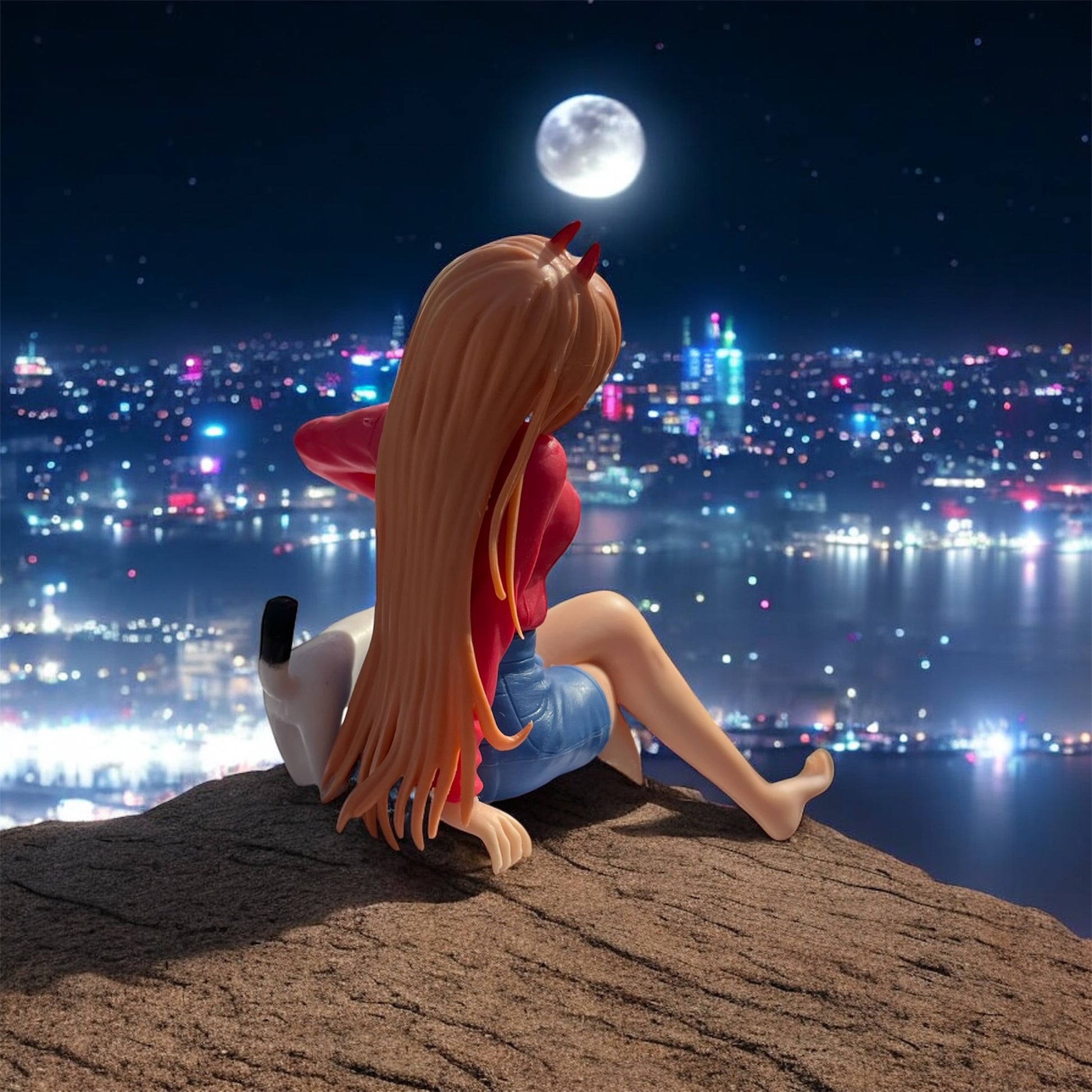Chainsaw Man figure, Power figurine, Power promise scene, anime collectible, Chainsaw Man merch, Blood Fiend statue, CSM Power figure, Meowy cat figure, Chainsaw Man funny scene, Power and Denji