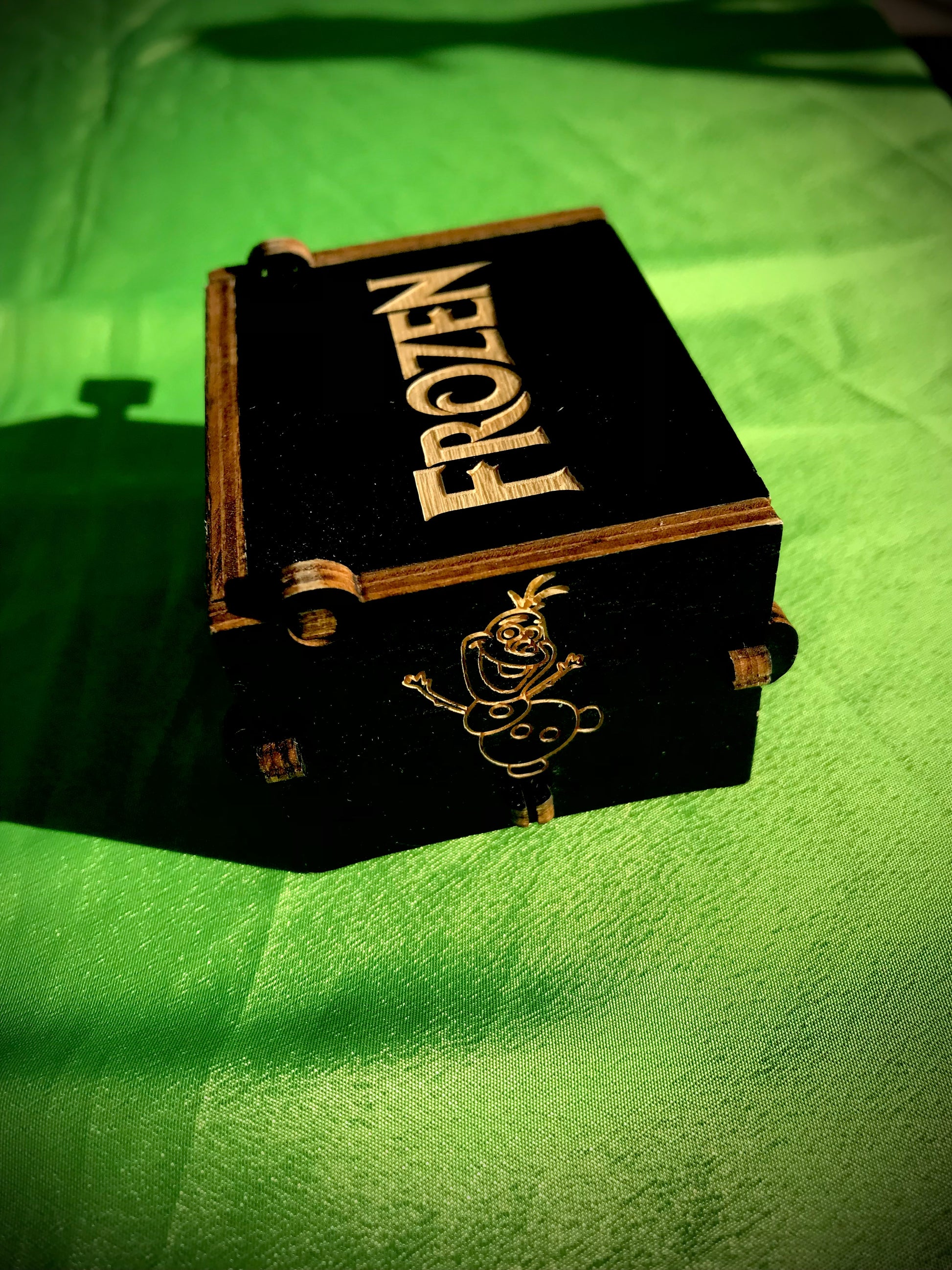 Bring the magic of Frozen into your home with our beautifully crafted wooden music box. This charming piece plays the beloved song Let It Go, instantly evoking the wonder and adventure of Elsa and Anna's journey through the enchanted kingdom of Arendelle. Meticulously carved from high-quality wood, this music box features intricate designs inspired by the iconic scenes and characters from the film, making it a perfect keepsake for any Frozen fan. Whether as a thoughtful gift or a treasured addition to your collection, this music box captures the heartwarming themes of love, courage, and self-discovery. Let the enchanting melody transport you to a world where magic and sisterhood reign, filling your space with the unforgettable spirit of Frozen.